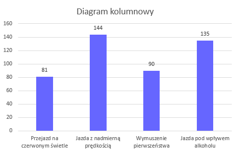 . Następnie przedstaw te dane w diagramie kolumnowym, z odpowiednio dobranymi wartościami na osiach.