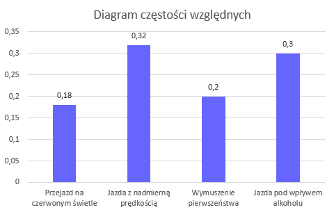 Aby stworzyć diagram częstości względnych, musisz najpierw obliczyć całkowitą ilość danych. Następnie oblicz jaką część całości one stanowią. Wystarczy, że obliczysz iloraz