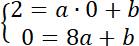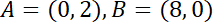 Stwórz układ równań, aby wyznaczyć prostą zawierającą AB: