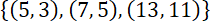 Punkty (5, 3), (7, 5), (13, 11) to jedyne punkty należące do wykresu funkcji g, których obie współrzędne to liczby pierwsze.