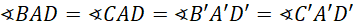 spełniają zasadę przystawania trójkątów kąt-bok-kąt, czyli trójkąty