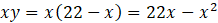 Liczbę 22 rozkładasz na składniki x oraz y. Zapisujesz sobie ich sumę, a następnie wyciągasz z równania jeden składnik, aby wyznaczyć iloczyn tych liczb. Zapisujesz to równanie jako funkcję kwadratową, która ma swoje maksimum w wierzchołku. Szukasz jego położenia.
