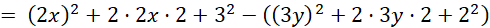 . Następnie wyciągnij minus przed nawias, aby oba równania dało się zwinąć ze wzorów skróconego mnożenia. Następnie skorzystaj ze wzoru: