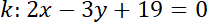 Zauważ, że aby trójkąt był równoramienny odległość punktu A od prostej k musi być taka sama jak odległość punktu B od prostej k. Zapisz: