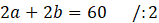 Oblicz, jakie wymiary powinien mieć prostokąt, wykonany z drutu o 60 cm długości, aby jego pole było maksymalne?