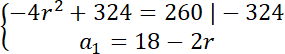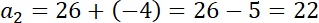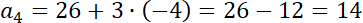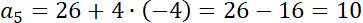 Odpowiedź: Wyrazami ciągu są liczby: 26, 22, 18, 14, 10.