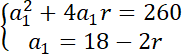 Iloczyn wyrazów skrajnych jest równy 260, więc