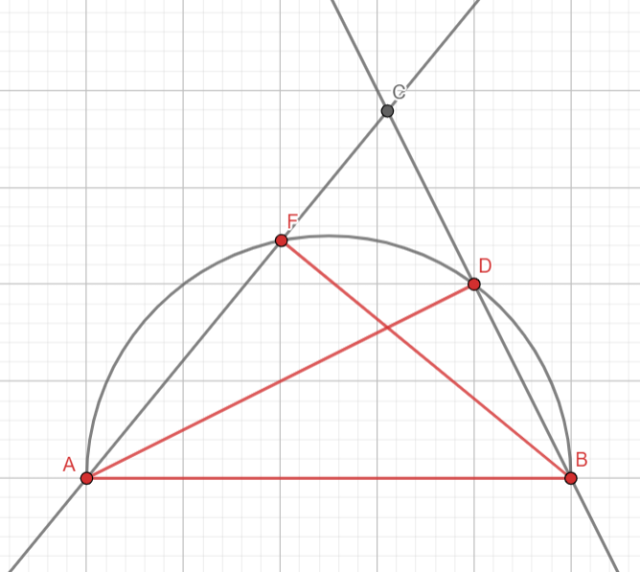 · na półokręgu zaznacz długości odcinków AD i BF;