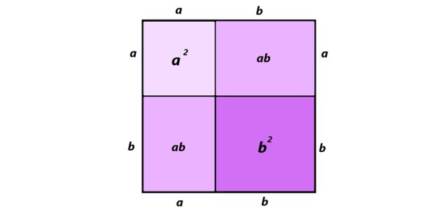 otrzymany poprzez dodanie pól pomniejszych figur, są sobie równoważne, możesz je porównać do siebie. W ten sposób dostaniesz dobrze Ci znany wzór skróconego mnożenia wyprowadzony geometrycznie.