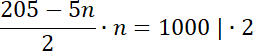 W tym zadaniu, wskaż liczbę dni, po których zapas prochu się skończył, jeżeli wiadomo, że na początku było 1000 beczek prochu. W pierwszym dniu zużyto 100, ale każdego następnego dnia zużywano o 5 beczek mniej.