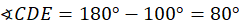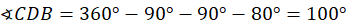 Zauważ, że kąt środkowy COB jest dwa razy większy od kąta wpisanego CAB. Wyznacz miarę kąta CDB, korzystając z sumy kątów w czworokącie CDBO, a następnie kąt ostry do niego przyległy.