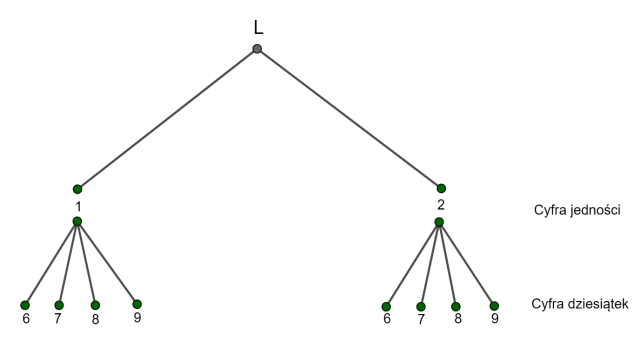Cyfra dziesiątek – cyfra większa od 5– {6, 7, 8, 9} → D = 4