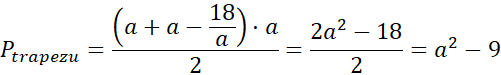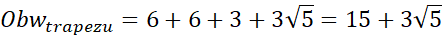 W tym zadaniu podaj, ile wynosi obwód trapezu, którego pole wynosi 27. Trapez powstał w wyniku podzielenia pewnego kwadratu na ten trapez i trójkąt o polu 9 przez prostą przecinającą wierzchołek kwadratu.
