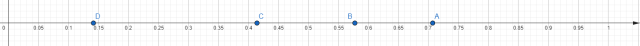 Musisz przeliczyć podane punkty na wartości liczbowe, tak by móc je wszystkie umieścić na wspólnej osi oraz porównać ich wartości.