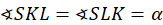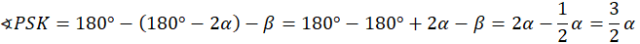 Zauważ, że trójkąty SKL i SLM są trójkątami równoramiennymi, o kątach przy podstawie α i β. Korzystając z sumy kątów w trójkącie SLM wyznacz zależność między α a β. Na koniec skorzystaj z kątów przyległych i oblicz miarę kąta PSK.