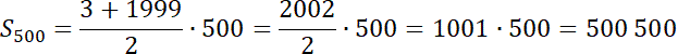 Zatem masz 500 wyrazów tego ciągu w sumie. Podaj sumę ze wzoru.