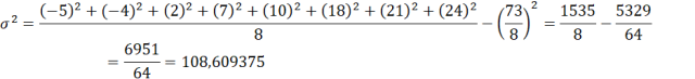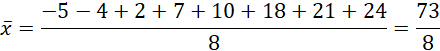 Mając dany zestaw liczb: -5 -4 2 7 10 18 21 24, określ jego odchylenie standardowe do dwóch miejsc po przecinku.