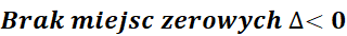 0 funkcja nie ma miejsc zerowych. Wartość miejsc zerowych wyliczamy ze wzorów: