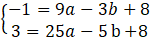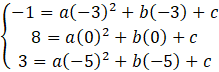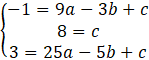 Tutaj musisz stworzyć układ trzech równań – każde równanie dotyczące jednego punktu, który należy do funkcji.