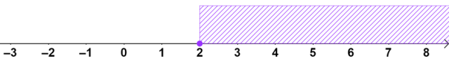 Odczytaj z układu nierówności jego zbiór rozwiązań, a następnie przedstaw go na osi liczbowej. Pamiętaj o odpowiednim przedstawieniu, kiedy zbiór jest otwarty, a kiedy domknięty. Zwróć uwagę na fakt, że oba warunki muszą być spełnione jednocześnie, a więc zbiór rozwiązań to tylko liczby większe lub równe 2.