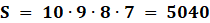 Na 4 miejscu wybierz spośród {0, 1, 2, 3, 4, 5, 6, 7, 8, 9}. - 7 możliwości