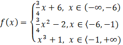 Punkty przecięcia funkcji z osią OX wyznacz, przyrównując wartość funkcji „sklejki” w każdym z opisanych przedziałów do zera. Następnie wyznacz argument x i porównaj go założeniami, czy należy do określonego przedziału dziedziny funkcji.