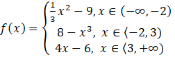 Punkty przecięcia funkcji z osią OX wyznacz, przyrównując wartość funkcji „sklejki” w każdym z opisanych przedziałów do zera. Następnie wyznacz argument x i porównaj go założeniami, czy należy do określonego przedziału dziedziny funkcji.