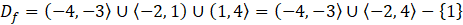 Dziedziną funkcji (Df) nazywamy zbiór wszystkich argumentów (x-ów) funkcji, którym została przypisana pewna wartość (dokładnie jedna). Odczytaj je z poziomej osi OX.
