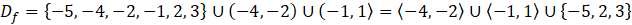 Dziedziną funkcji (Df) nazywamy zbiór wszystkich argumentów (x-ów) funkcji, którym została przypisana pewna wartość (dokładnie jedna). Odczytaj je z poziomej osi OX.