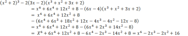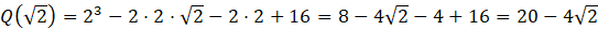 Masz określić stopień wielomianu 𝑄 = [𝑊(𝑥)]3 − 2𝑃(𝑥)𝑅(𝑥) i podaj jego wartość dla 𝑥 = √2, jeśli 𝑊(𝑥) = 𝑥2 + 2, 𝑃(𝑥) = 3𝑥 − 2, 𝑅(𝑥) = 𝑥3 + 𝑥2 + 3𝑥 + 2.