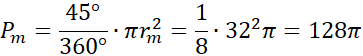 Obliczmy pole powierzchni zadanego wycinku na większej pizzy: