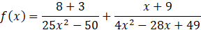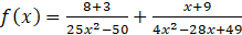 Dziedzinę funkcji określ, wiedząc, że wyrażenia w mianowniku nie mogą być równe zeru. Skorzystaj z wzoru skróconego mnożenia: