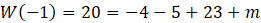 Masz podane, że reszta dzielenia wielomianu 4𝑥3 − 5𝑥2 − 23𝑥 + 𝑚 przez pewien dwumian (x+1) wynosi 20. Twoim zadaniem jest znalezienie współczynnika
