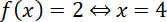 Skorzystaj z wykresu, aby odczytać, że funkcja f przyjmuje wartość równą 2 dla argumentu x = 4.