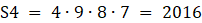 1 cyfrę wybierz ze zbioru {6, 7, 8, 9} - 4 możliwości