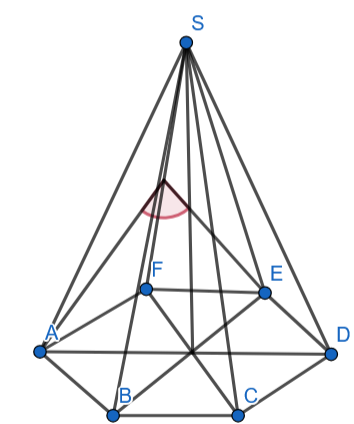 Narysuj w zeszycie rzut ostrosłupa prawidłowego sześciokątnego i zaznacz podany kąt dwuścienny. Kąt między ścianami bocznymi AFS i EFS
