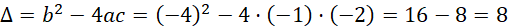 to tak zwany wyróżnik funkcji, który możemy obliczyć ze wzoru: