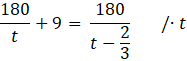 Masz obliczyć średnią prędkość pociągu, jeśli wiadomo, że czas przejazdu można skrócić o 40 minut, jeśli prędkość tę zwiększyć o 9 km/h oraz że droga wynosi 180 km.