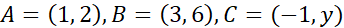 Dobierz takie wartości x lub y, aby punkty A, B i C leżały na jednej prostej w układzie współrzędnych.