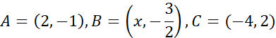 Dobierz takie wartości x lub y, aby punkty A, B i C leżały na jednej prostej w układzie współrzędnych.