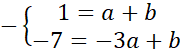 Utwórz dwa równania wstawiając współrzędne do równania funkcji liniowej