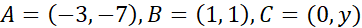 Dobierz takie wartości x lub y, aby punkty A, B i C leżały na jednej prostej w układzie współrzędnych.