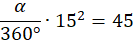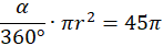 Znajdź kąt środkowy wyznaczający wycinek koła, jeżeli dla promienia 15 ma on pole równe 45π.