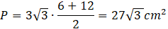 W trapezie równoramiennym przekątne przecinające się pod kątem 120° są dwusiecznymi kątów przy podstawie. Wyznacz pole tego trapezu, wiedząc, że długość ramion jest równa 6 cm.