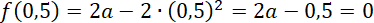 0,5 ma być miejscem zerowym funkcji f, więc f(0,5) = 0. Wyznacz wartość a, wiedząc, że f(0,5) = 0.