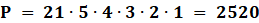 6 + 5 + 4 + 3 + 2 + 1 = 21