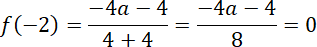 -2 ma być miejscem zerowym funkcji f, więc f(-2) = 0. Wyznacz wartość a, wiedząc, że f(-2) = 0.
