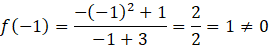 Wyznacz dziedzinę funkcji, wiedząc, że wyrażenie w mianowniku nie może być równe zeru. Następnie oblicz wartość tej funkcji dla wskazanych argumentów (nie uwzględniając -3). Gdy wynosi ona 0, to dana liczba jest miejscem zerowym tej funkcji.