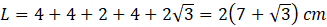 Kąt rozwarty trapezu prostokątnego ma miarę 120°, krótsza z podstaw ma 4 cm, a dłuższa przekątna tworzy z dłuższym ramieniem kąt o mierze 30°. Wyznacz pole, długości pozostałych boków oraz obwód tego trapezu.