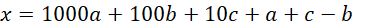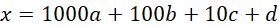 Załóżmy zapis liczby „x” w postaci „abcd”, w której „a” to niewiadoma cyfry tysięcy, „b” niewiadoma cyfry setek itd.: